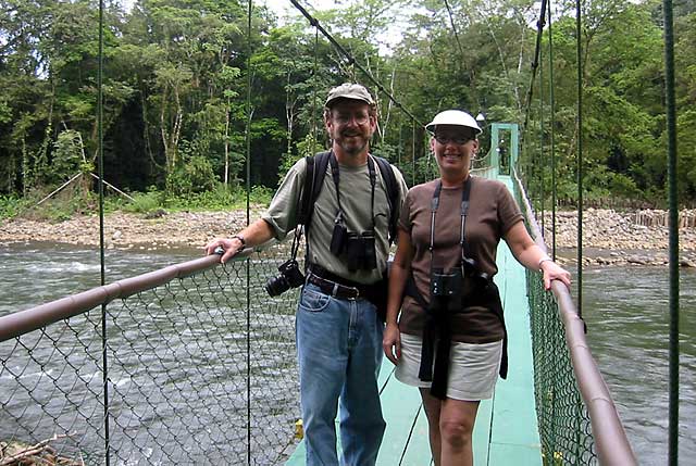 David and Denise over Sarapiqui River at Selva Verde Lodge, Costa Rica, CA